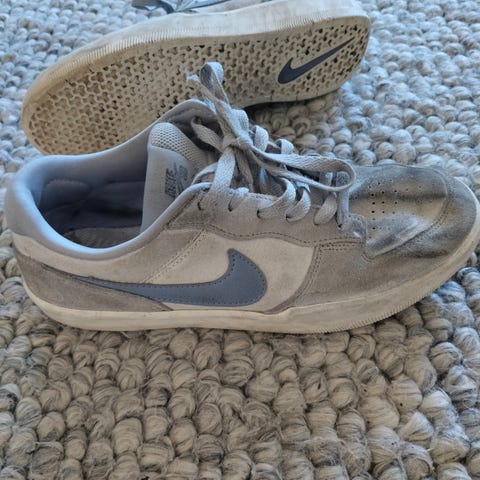 Nike SB sneakers i storlek 42. Skorna har ovandel i rosa mockaliknande material med svart Nike-logga och svarta skosnören. Yttersula i vitt gummi. Modellen är avsedd som vardags- eller skatesko och passar för dagligt bruk. Innersula med Nike SB-märkning.