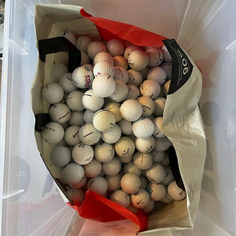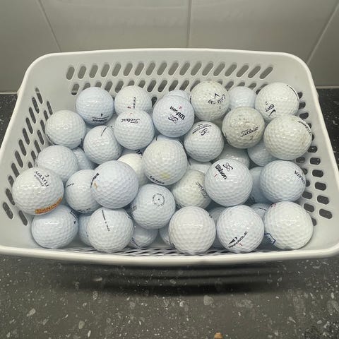 Golfbollar i vit färg. Blandade märken och modeller, flera med märkning. Passar bra för träning