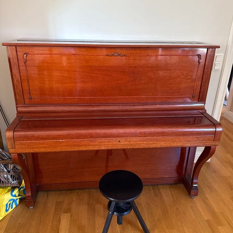 Marshall & Rose akustiskt piano i trä. Från 50talet. Ostämt och nån sträng eller 2 kan behöva bytas. Men intakt. Men lite omvårdnad kan det förhoppningsvis låta vackert igen.