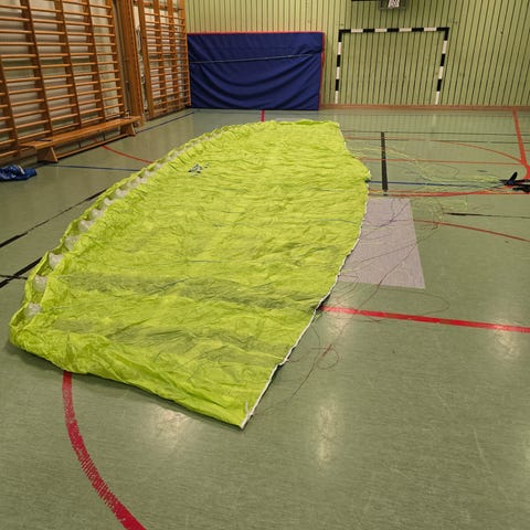 GIN Atlas X-Alps skärm EN-B, storlek S (75-95 kg), tillverkad 2017. Inkluderar en Skywalk Cult 4 sele, storlek M, och en Ozone packpåse. Nödskärmen är en Q 120 från Parasupply.