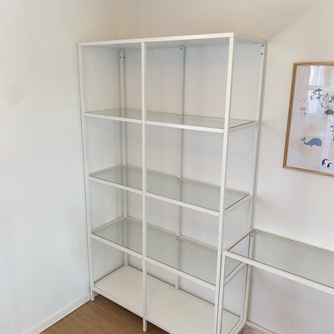 Kan fås nedmonterad. Säljer även en bokhylla i samma modell (se separat säljinlägg). Finns att hämta i Frillesås.