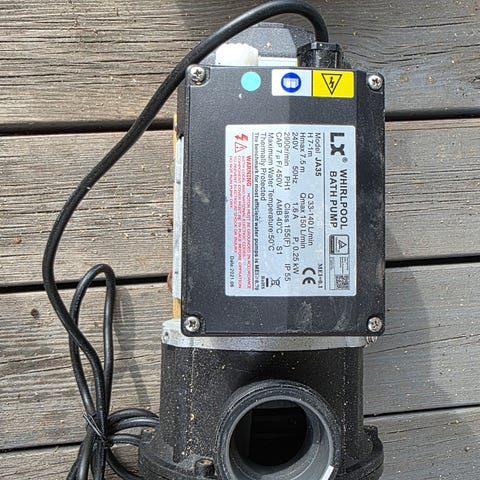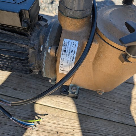 Pahlens poolpump modell Watervise HS55, "bronspump". 1-fas med stickpropp. 0,55kw/0,75 hk. Pumpar 15 kubikmeter i timmen. Pumphus och pumphjul av brons, pumpaxel av rostfritt syrafast stål. Nypris idag ca 12000 kr.