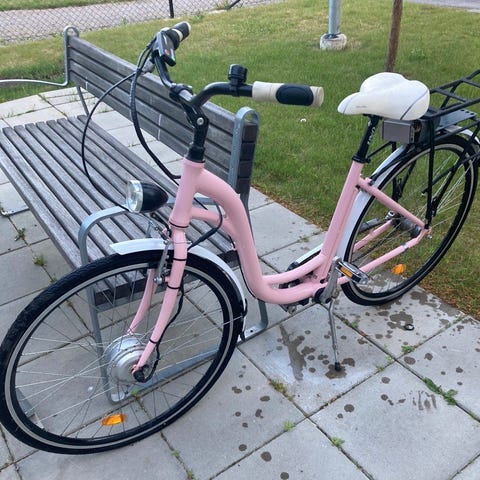 Crescent elcykel för unisex med ramstorlek 51 cm och 28" hjul. Cykeln har lågt insteg, pakethållare bak med plats för batteri, korg framtill och skärmar. Utrustad med elassistans som styrs via display på styret. Växling sker med vridreglage på höger sida av styret. Sadeln är ljus och cykeln har en rosa ram. Lämplig för vardagscykling och pendling i stadsmiljö.