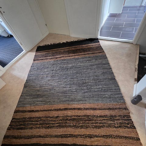 Detta är en one of a kind-matta – endast ett exemplar finns – ett personligt och exklusivt inredningsval för dig som uppskattar hållbar design, genuint hantverk och unik estetik.