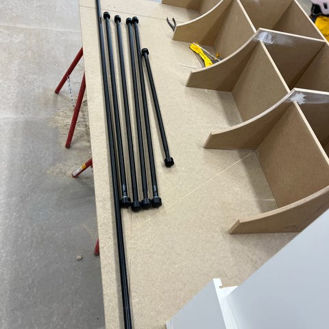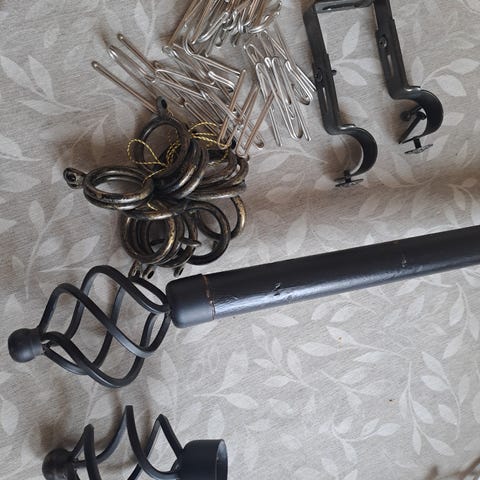 Fyra st gardinstänger, utdragbara med detaljer vid ändarna.