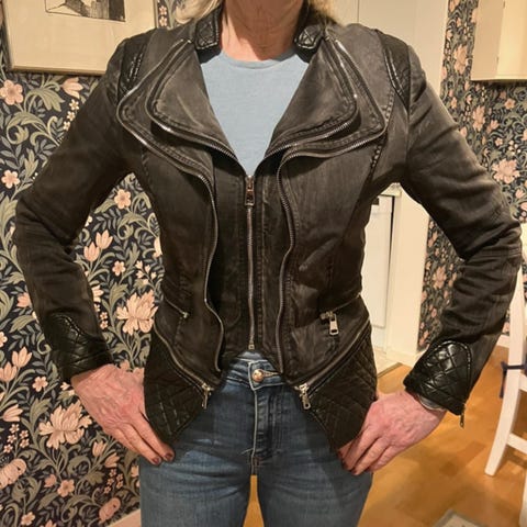 Mc-jacka/ skinnjacka till dam - med uttagbart ryggskydd.