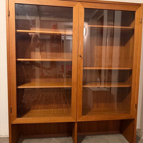 Två vitrinskåp i glas, med belysning, bortskänkes mot avhämtning i Kil. Skåpen kan monteras isär.
