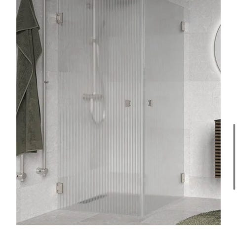 Fast duschvägg med linjeglas. Duschväggen har varit monterad men aldrig använd, då vi behövde byta eftersom brytningseffekten från linjeglaset inte fungerade för oss. Den enda åverkan jämfört med nyskick är att ett hål borrats för stödarmen, så duschväggen måste stå med fast vägg på vänster sida sett utifrån. Levereras med okapad stödarm.