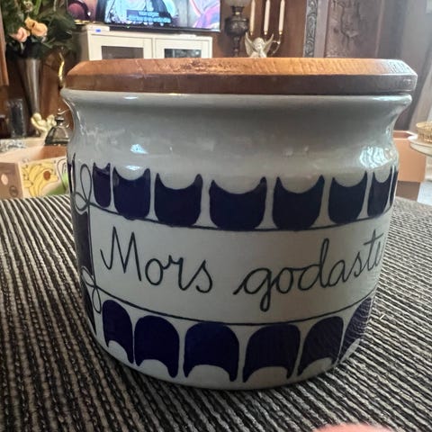 3st olika vackra keramikburkar av Marianne Westman. 400kr för den stora och 300kr för lilla. Ena är sprucken och lagad 200kr.