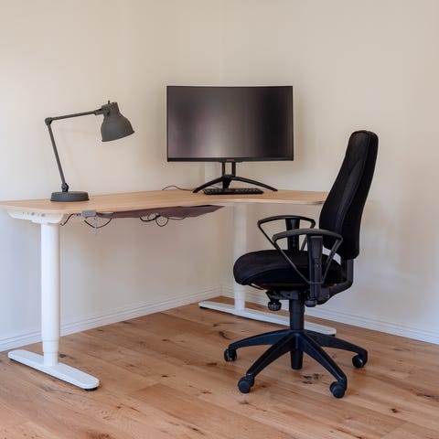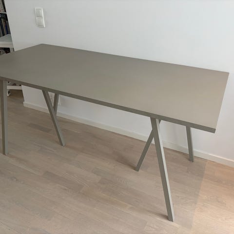 Stilrent skrivbord med bordskiva i travertin och ben från HAY. Tungt och gediget.