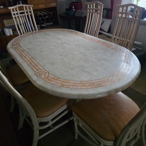 Vi ska flytta och behöver bli av med detta matbord och stolar. De kommer som ett paket så det går inte enbart att hämta stolar eller bordet.