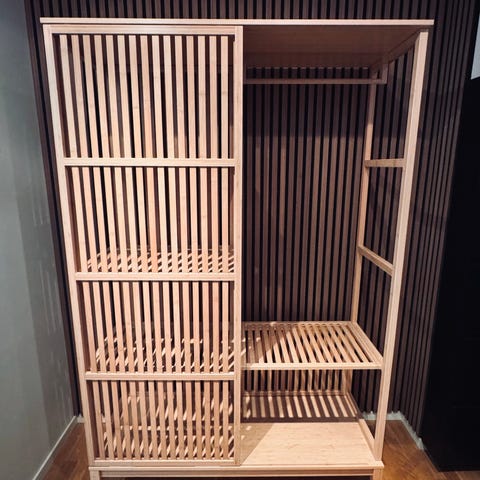 Nordkisa från Ikea. Öppen garderob i bambu med skjutdörr.