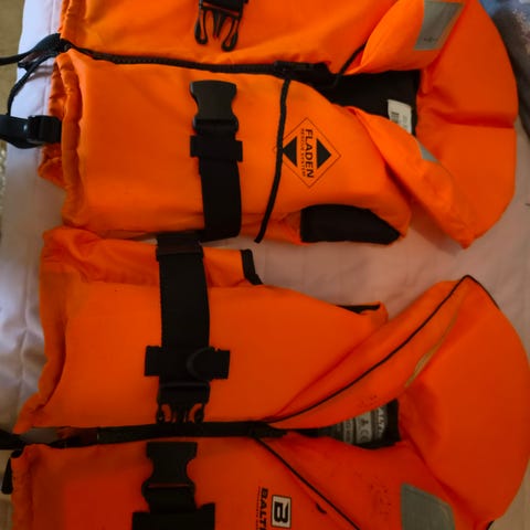 Helly Hansen flytvästar i flera modeller och storlekar. Flera västar i orange med reflexdetaljer och midjebälte, samt modeller i svart och röd med dragkedja och spänne. Västarna har justerbara remmar och är avsedda för användning vid båtliv och andra vattenaktiviteter. Flera av västarna har krage för extra flytkraft runt huvud och nacke.