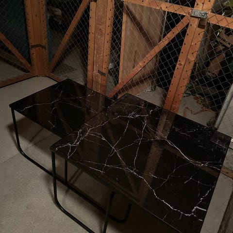 Rund soffbord med riktig marmorskiva. Finns lite fläckar men inget som stör och det går att behandla dessa.