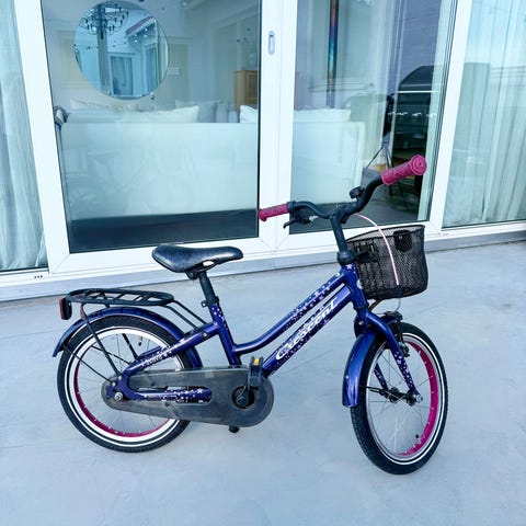 Crescent barncykel med 16" hjul i lila färg med rosa detaljer. Utrustad med framkorg, pakethållare bak, kedjeskydd och reflexer. Cykeln har fotbroms bak och handbroms fram. Passar som barncykel för kortare turer i vardagen, till skola eller fritidsaktiviteter.