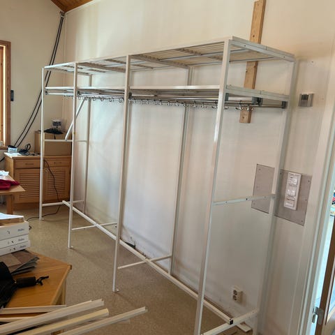 Säljer två garderober med en lättmonterad aluminiumstomme och textilöverdrag. Mycket praktiska till klädförvaring i källare eller vind tex. Två hyllor i botten.Mått en garderob höjd 180 cm , bredd 80cm och djup 55 cm. Säljer bara båda tillsammans