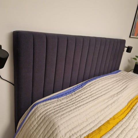 Falsterbo sänggavel står på två ben, och placeras enkelt mellan säng och vägg.