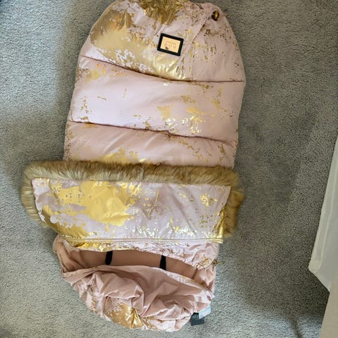 Med yttermaterial i vind och vattenavstötanxe nylon. Insida med lammskinn från Nya Zeeland. Uttag för fempinktsbälte som passar alla vagnar.