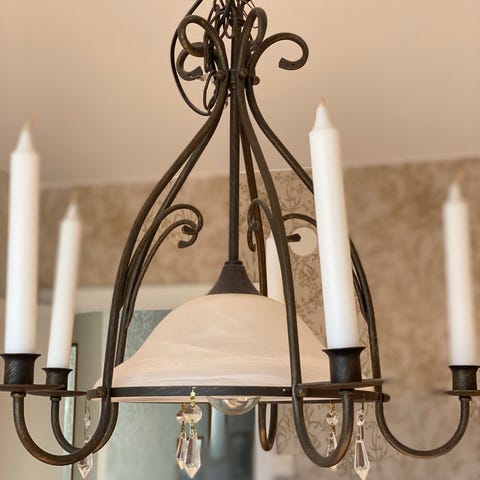 IKEA fönsterbelysning i form av en ljuskrona med flera ljuspunkter. Armaturen är utförd i svart metall med dekorativa hängprismor. Avsedd som fönsterbelysning och levereras med cirka 3,5 m kabel enligt förpackningstext. Lamporna är utbytbara och ska vara ordentligt iskruvade vid användning. Formgiven av Achille Castiglioni enligt angiven uppgift.