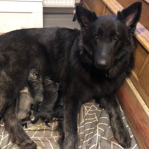 Mamman & pappan har ett fantastiskt psyke, familjekära, vaktiga och trygga. Mamma är schäfer, pappa husky.