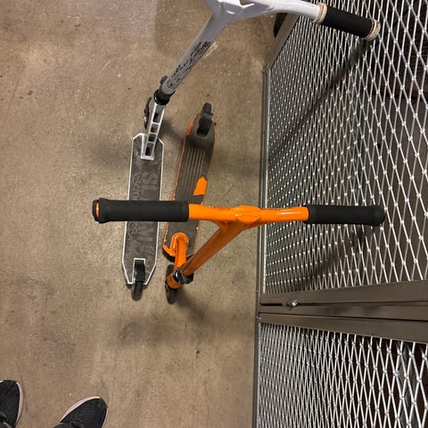 Sparkcykel skateboard med styrstång i svart färg. Brädan har ett grafiskt mönster i svart och vitt och är monterad på fyra hjul med bred hjulbas. Utrustad med T-format styre med skumhandtag för bättre grepp. Lämplig för åkning på plana underlag, exempelvis gårdar, gångvägar och liknande miljöer. Passar för barn eller ungdomar beroende på längd och viktbegränsning från tillverkaren, som inte framgår här.
