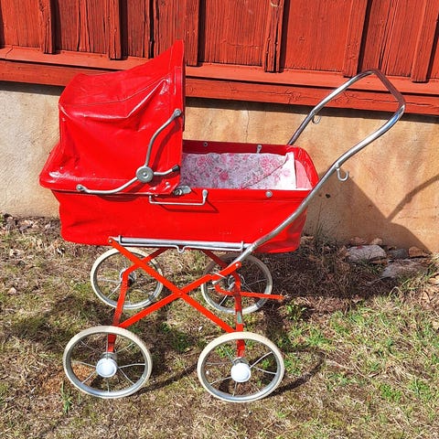 Fin retrobarnvagn en genuin leksaksvagn från 50-talet ärvd av äldre generationen. Hade jag haft plats hade vi behållt den. Hoppas den kan flädja en ny generation.
