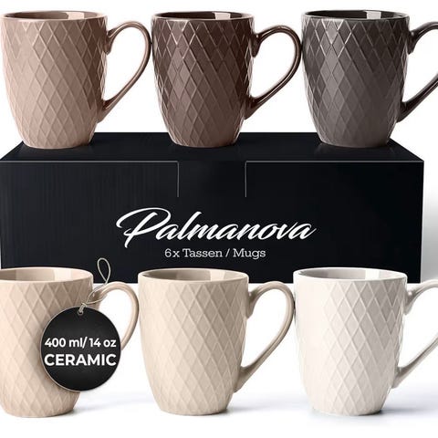 Granit muggar par i beige keramik, höjd cirka 10 cm. Muggarna har räfflad utsida och slät insida. Passar för varma och kalla drycker som kaffe, te eller andra drycker i vardag och kök.