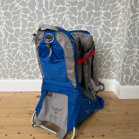 Säljer en bärryggsäck av märket Osprey och modellen Poco Plus i färgen Blue sky. Ryggsäcken är i mycket fint skick och använd ett fåtal gånger, se bilder.