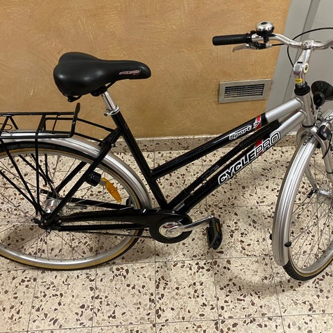Knappt använd. Fått skav handtag samt korg, se bilder, annars fin. Pumpad o klar. Abuslås med nyckel. Lampor funkar, nya batterier.