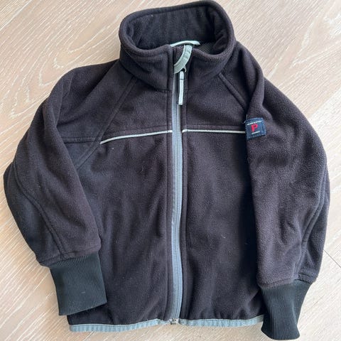 Geggamoja fleecejacka för barn, unisexmodell i storlek 128. Jackan är rosa och tillverkad i polyester. Den har hel dragkedja framtill, hög krage och framfickor med kontrastkant. Muddar vid ärmslut med tumhål. Insidan har slätare material medan utsidan är mjuk fleece. Jackan passar som ytterlager vid mildare väder eller som mellanlager under en skaljacka.hel o ren o fin . De är i armslutet de blivit smutsrosa , som inte går bort .