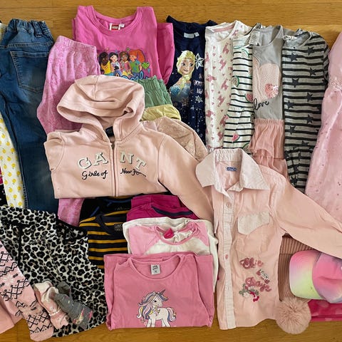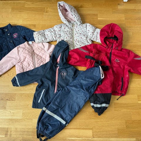 Ett stort klädpaket i storlek 86/92 säljes. I paketet ingång tröjor, toppar, klänningar, kjolar, koftor, byxor, tights, strumpbyxor, nattplagg och baddräkter. Bilderna visar ett urval. Allt i fint skick.