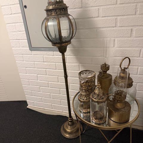 Litet bord, ljuslykta och 2 ljusstakar, paketpris