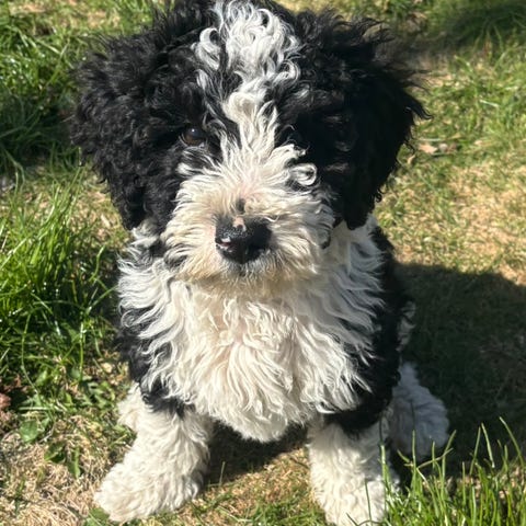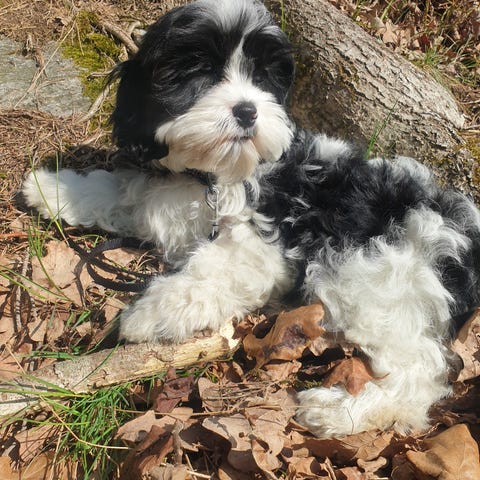 Mamma är en två färgad harlekin pudel som är uppfödd av oss. Väldigt trevlig tik som är trogen sin familj.