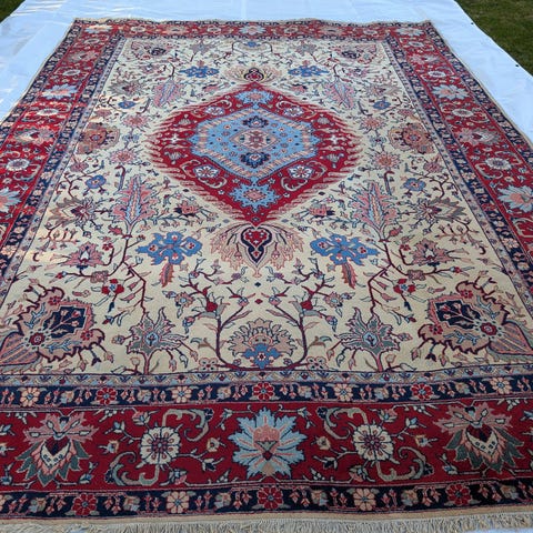 En jättefin handknutna persisk matta Sarough. Gammal rustik färg matta är i mycket gott skick helt rent och fint. Storlek 340x250cm med Äkthetsintyg.