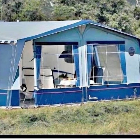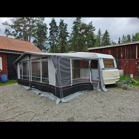 Förtält till husvagn. Jag minns inte om det är ett Isabella eller Ventura. Har suttit på en Hobby Prestige 535T årsmodell 1990. Tältet är dock nyare än så men jag vet inte när det köptes in. Tälten ingick i husvagnen som jag köpte förra sommaren och har endast monterats upp för att se att det var helt och i gott skick.