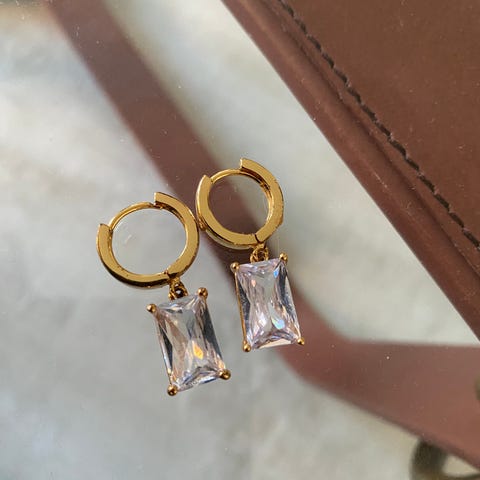 Guldpläterade hjärtformade örhängen i stål med kristaller. Ca 2,5 x 2 cm stora. Hjärtat kan även plockas av, ifall man bara önskar använda ringen vid vissa tillfällen.