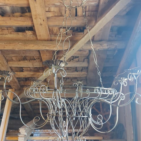 Takkrona, smidesljuskrona i metall för 6 st stearinljus, rustik stil