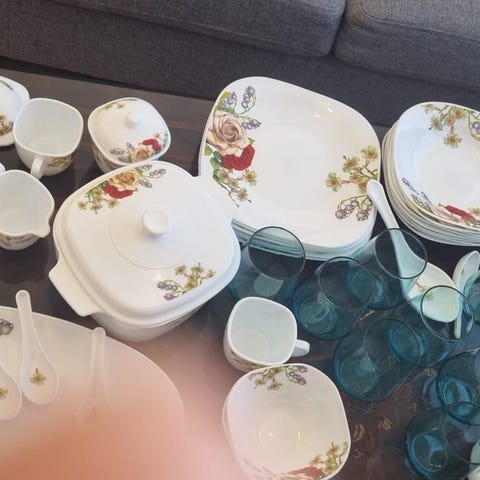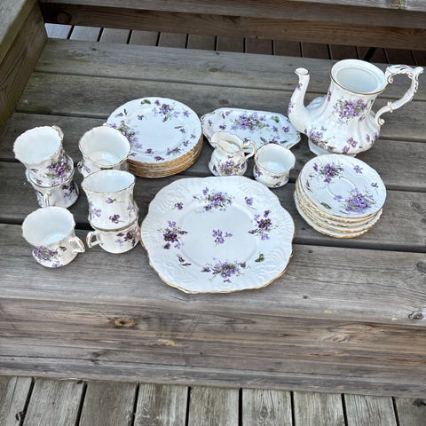 Mkt fin service vintage 30-50 talet vit/lila se lista på de olika delarna