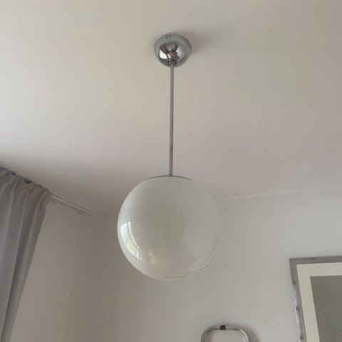 Ikea bordslampa med två opalvita glaskupor och kromad metallfot.