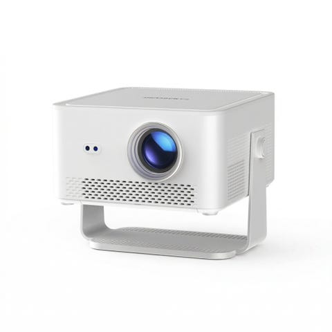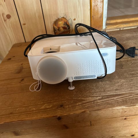 Miniprojektor Wolfgang WP01. Kompakt modell med bärrem upptill för enkel förflyttning. På baksidan finns anslutningar som bland annat HDMI, USB, hörlursuttag och strömanslutning. Lämplig för uppspelning av bild och video från kompatibla enheter via kabelanslutning. Levereras med nätadapter. Lätt att stuva undan och ta fram vid behov. Använd max 10h.
