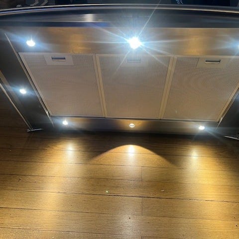 Snygg köksfläkt med tidlös design, rostfri med skorsten i vinkel eller rak vad man önskar.