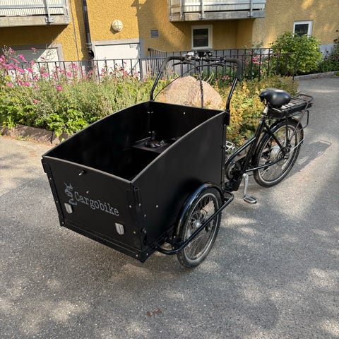 En fin Cargobike Delight med mittmotor. Mycket nya delar som ett helt nytt oanvänt större batteri på 15.6 Ah ( 13Ah original), nytt bakhjul ny kasett, ny kedja ny derailleur, nytt bakdäck fina framdäck, helt genomgången och fungerar perfekt. Vid behov kan en helt ny barnbänk medfölja då lådan är tom nu