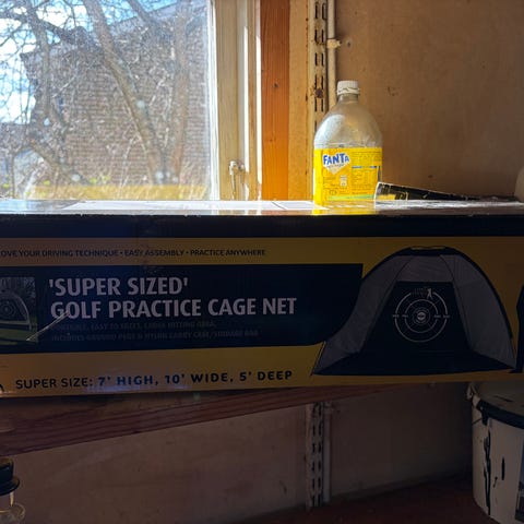 Chipping golftarget med nät för övning av chippslag. Rund ram med flera målzoner i nät, inklusive innersta målzon markerad i rött. Avsedd för golfträning inomhus eller utomhus, kan användas för att träna precision och kontroll vid chippning.