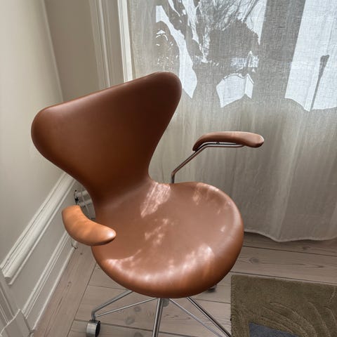 Fritz Hansen Sjuan 3117 kontorsstol, walnut läder - nyskick