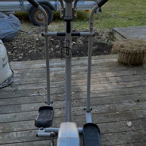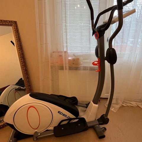 Cyclone crosstrainer i grå färg. Maskinen har handtag för överkroppsträning och fotplattor för lågintensiv konditionsträning inomhus. Utrustad med enkel träningsdator som visar grundläggande träningsdata som tid, hastighet och distans. Lämplig för hemmabruk och för användare som vill träna kondition och rörelse i både armar och ben. Hämtas på plast/ armarna kan monteras ner.
