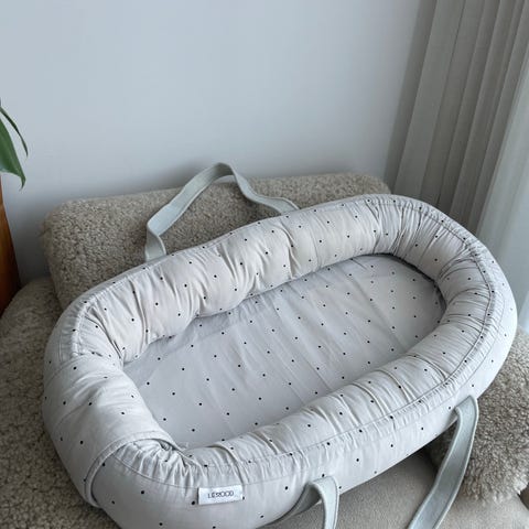 Fint 2-i-1 babynest och babylift från Liewood som gör det enkelt att flytta runt ditt barn i hemmet! Babynestet är försett med långa bärhandtag och en hård botten för smidigt och säkert bärande. Vi har utan problem flyttat vår bebis upp och ner för trappor i denna utan att han vaknat eftersom botten är så stabil. Vi har använt detta nest för nattsömn och bebisen har sovit gott i det.