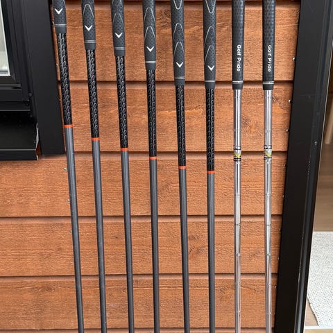 flera golfklubbor av blandade modeller. Klubborna har olika skaft och grepp, vilket kan passa för olika typer av slag och spelstilar. Lämpligt för golfspelare som behöver komplettera eller ersätta enstaka klubbor i sin utrustning.