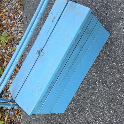Blå metall verktygslåda utdragbar