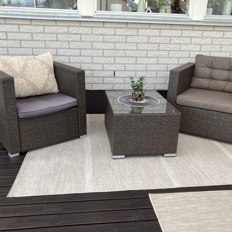 Loungeset med dynor från Jysk. Det heter Mora, är 5 år gammalt och verkar inte säljas längre.