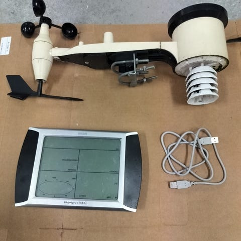 Viking Wind & Rain väderstation , art nr: 02039, med färgdisplay för visning av bland annat inomhus- och utomhustemperatur, lufttryck, nederbörd, vindhastighet och vindriktning.